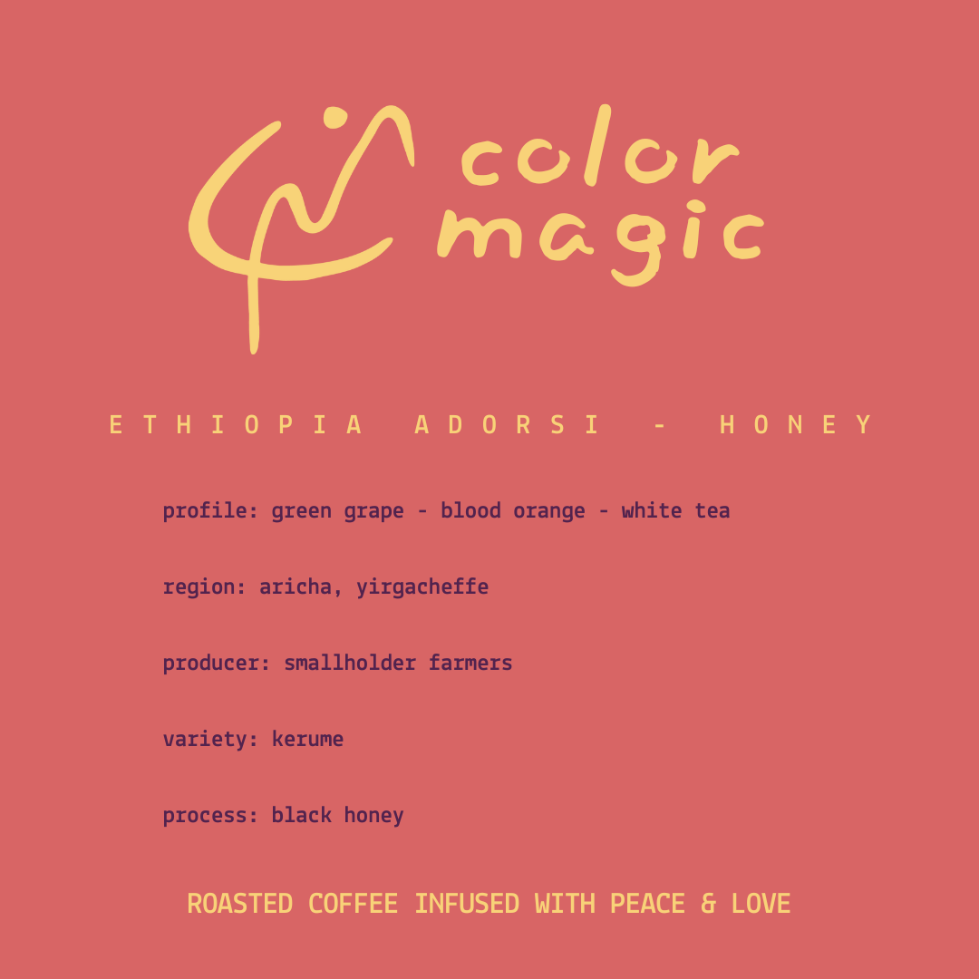 High in the mountains of Yirgacheffe, over 800 smallholder farmers bring their freshly picked cherries to the Adorsi Washing Station in the village of Aricha. Owned and operated by the Yonis family, Adorsi is known for its careful and innovative approach to processing—combining tradition with precision to highlight the elegance of Ethiopian coffee.